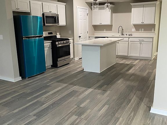 Large open concept kitchenLvt flooringWhite furniture grade cabinetsGranite countertopsUpstairs utility room