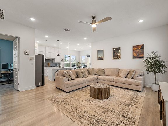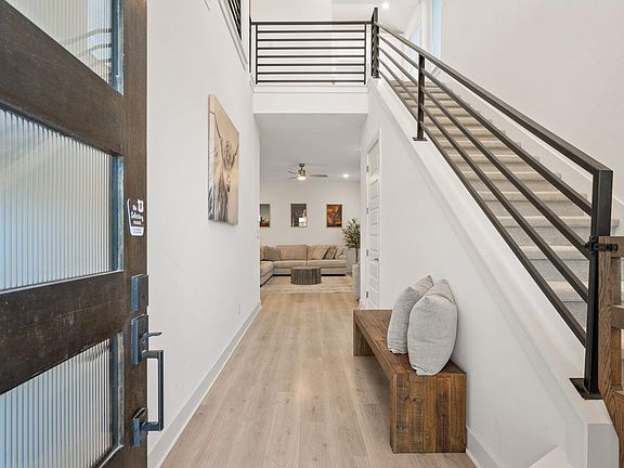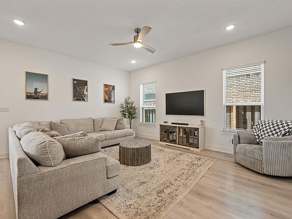Spacious and stylish in Parmer Ranch, this 4-bedroom, 2.5-bath home with a downstairs flex space/4th bedroom offers nearly 2,500 sq ft of thoughtfully designed living. Bright white cabinetry, luxury vinyl plank flooring, and full-height finishes set the tone, while the main-level primary suite features a dual vanity, walk-in shower, and soaking tub. Upstairs you’ll find generously sized secondary bedrooms, a loft, and plenty of storage. Extras include a water softener, reverse osmosis system, irrigation, smart lighting, hardwired Ring cameras, and gem lights. The private backyard with covered patio is perfect for entertaining, and the community amenities include a clubhouse, pool, fitness center, parks, playgrounds, sport courts, and trails. If buyer uses the seller’s preferred lender, the lender will pay for the cost of a 1/0 temporary rate buy-down, meaning the buyer’s first 12 monthly payments of the loan will be calculated at a 1 percent lower rate. Seller will offer professional cleaning prior to closing and will provide a complimentary one year home warranty.