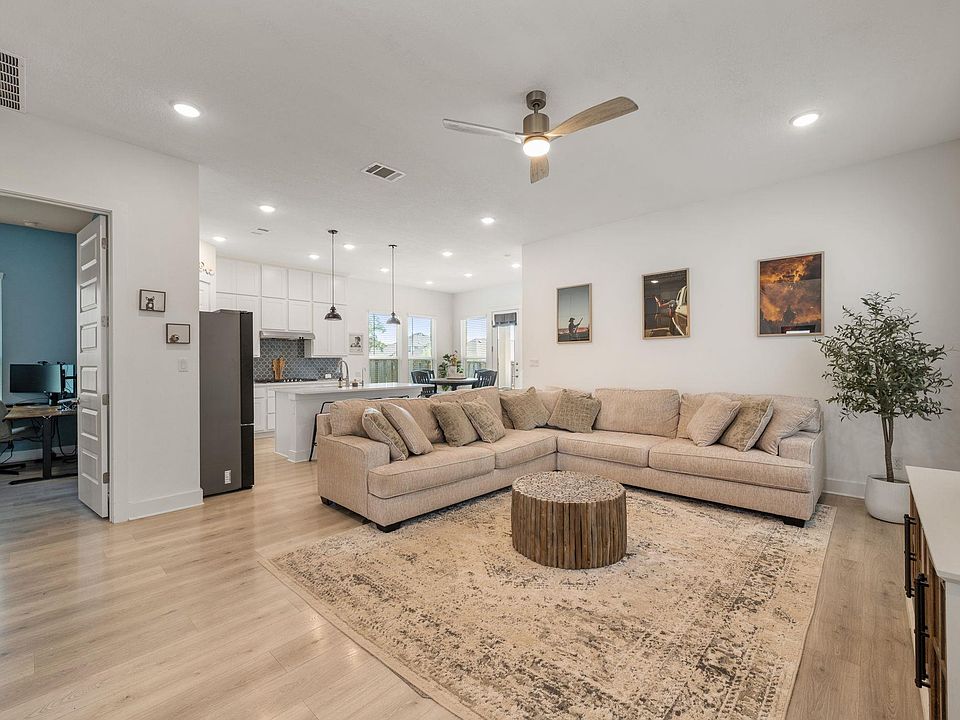 Spacious and Modern Living in Parmer Ranch! This 4-bedroom, 2.5-bath home with a downstairs flex space or 4th bedroom offers nearly 2,500 sq ft of well-designed comfort. Bright white cabinetry, luxury vinyl plank flooring, and full-height finishes create a clean, cohesive look throughout. The main-level primary suite features a dual vanity, walk-in shower, and soaking tub for added convenience. Upstairs, you’ll find spacious secondary bedrooms, a versatile loft, and ample storage. Additional highlights include a water softener, reverse osmosis system, irrigation, smart lighting, hardwired Ring cameras, and gem lights. The private backyard with a covered patio is ideal for outdoor gatherings, and residents enjoy access to community amenities, including a clubhouse, pool, fitness center, parks, playgrounds, sports courts, and trails. If buyer uses the seller’s preferred lender, the lender will pay for the cost of a 1/0 temporary rate buy-down, meaning the buyer’s first 12 monthly payments of the loan will be calculated at a 1 percent lower rate. Seller will offer professional cleaning prior to closing and will provide a complimentary one year home warranty.