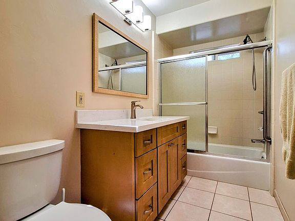 Welcome to our newly refurbished 3bd/1.5ba single story house located in the vibrant city of Sunnyvale, CA. This charming county-style home sits in front of a shared property and offers a private yard where you can relax and enjoy the beautiful surroundings. NEW PAINT THROUGHOUT! NEW door knobs and hinges throughout, as well! The house will also come with a NEW roof! Natural light floods the space through the bathroom skylight, as well as through the double pane windows with NEW mini-blinds and overhead lighting, illuminating the rooms throughout. Luxury vinyl plank flooring throughout with exception to ceramic tiles in the bathrooms and lino in the kitchen. The kitchen includes granite and tile countertops, garbage disposal, fridge, dishwasher, gas range, washer, dryer, lots of cabinets, and access to the private backyard. The remodeled bathroom has a NEW granite countertop, NEW vanity, NEW mirror, NEW light fixture, a skylight that opens, and a shower-tub combo with NEW shower doors. NEW light fixtures in the bedrooms. The detached garage is very spacious, can park up to 3 vehicles, and includes a kitchenette with sink, a skylight, and the half bathroom is located inside the garage. The backyard has a covered patio with bench, and lots of shady trees. The front yard has been beautifully landscaped with drought friendly landscaping and irrigation system. Long driveway can fit up to 3 vehicles parked tandem, and plenty of street parking out front, as well. The house has approximately 944 sqft, with the following room measurements: Living room = 14' x 15.5', primary bedroom = 10' x 13', middle bedroom = 8.5' x 10', and the front bedroom = 8.5' x 10'.