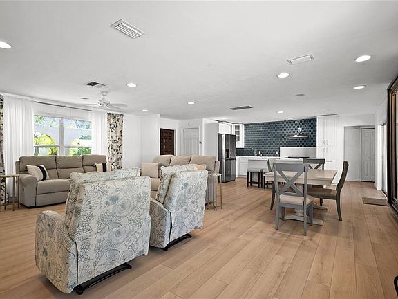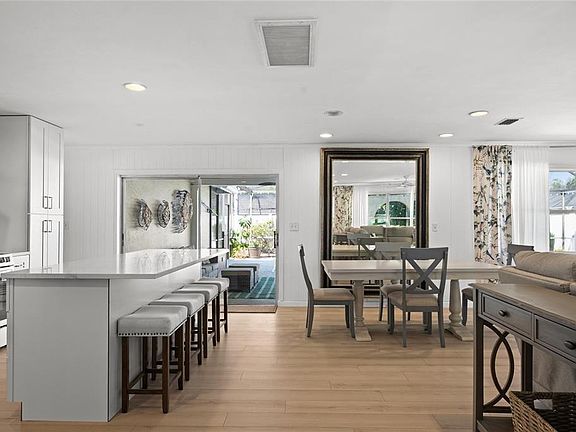Welcome to a truly turn-key 3 br/ 2 ba/ 2-car garage pool home in the highly desired Del Prado neighborhood! This property has just undergone a total renovation and showcases a modern, flowing design that is ready for you to enjoy! Step inside to an open floor plan bathed in natural light, featuring beautiful, durable luxury vinyl plank flooring throughout. The heart of the home is the brand new kitchen, a chef's dream boasting elegant quartz countertops, all new stainless steel appliances, custom soft close cabinets, a custom tile backsplash, and a spacious island perfect for prep work and casual dining. The master suite is a serene retreat with a newly remodeled master bath featuring a luxurious, oversized walk-in shower with custom tile work and modern fixtures. Outside, the screened lanai area remains an entertainer's paradise, complete with an outdoor kitchen and covered lounging area ready for your next family gathering. Enjoy year-round Florida living with your sparkling pool as the centerpiece. Bonus Benefits & Peace of Mind:This home offers more than just a fresh look—it comes with significant system updates, including the A.C. ductwork being all redone. The roof, A.C. unit, and water heater are all approximately 8 to 10 years young. Also included is an additional stainless steel refrig plus washer/dryer plus extra large storage cabinets in the ample 2 car garage! Enjoy a convenient locale within a half mile to shopping and a quick 8-minute, 2-mile drive to the beach! This property offers peace of mind as it is high and dry in a non-evacuation, X, no flood zone. Don't miss the opportunity to own a designer home in a great neighborhood with all Seminole schools!