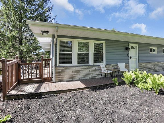 Welcome to your fully updated, low-maintenance ranch on 1.5 scenic acres! Surrounded by mature trees and open space, this 3-bedroom home features a flex room, oversized 2-car garage with workspace and epoxy flooring, screened-in porch, side deck, and partially fenced yard. Enjoy a stunning new kitchen with quartz countertops, subway tile backsplash, new cabinets, and stainless appliances. The full bath is completely renovated, and luxury vinyl plank floors run throughout. Fresh paint, new siding, new roof, Culligan reverse osmosis system & GE water softener complete the package. Just minutes from the new data centers and Silicon Heartland with easy freeway access—this one's a must-see!