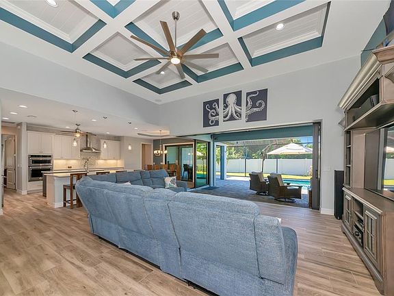 Experience true Florida living on this rare triple lot estate with an additional parcel across the street, located in the highly desirable South Gulf Cove community. This custom-built 4 bedroom, 3.5 bath residence offers space, privacy, and premium upgrades throughout—complete with a newer roof (2023) and an expansive 3-car garage. Step inside to an open, elegant split floor plan featuring soaring ceilings, 8-foot doors, and custom 90-degree corner pocket sliders that seamlessly open to the lanai. The chef’s kitchen is the heart of the home, boasting an induction cooktop, pot filler, wine fridge, abundant cabinetry, and extensive counter space—perfect for hosting and entertaining. The primary suite offers private pool access, dual walk-in closets, and a spa-inspired bath with a walk-through double shower and soaking tub. Guest accommodations include a true Jack-and-Jill bathroom between bedrooms two and three, with a separate fourth bedroom and bath strategically placed for privacy. Every detail of this home reflects quality craftsmanship, including soft-close cabinetry, whole-house water filtration, advanced HVAC with HEPA, spray foam attic insulation, and PGT impact windows and sliders for energy efficiency and peace of mind. Outdoor living is unbeatable with a 52x31 ft covered lanai, heated saltwater pool with 5x8 sun shelf, outdoor shower, and pre-plumbed summer kitchen connections. Pet lovers will appreciate the built-in catio and dog access door leading out to the lanai. The fully fenced property features a charming butterfly garden, private irrigation system on two wells (no high water bills!), and a rear deck ideal for fire pit evenings. The additional lot includes a shed with electric and a canopy perfect for boat or RV storage, adding even more versatility and value. Located minutes from world-class boating, fishing, beaches like Boca Grande, golf courses, marinas, shopping, dining, and the Rays and Braves Spring Training stadiums—this home offers the ideal Southwest Florida lifestyle. Don’t miss this rare opportunity to own a private coastal retreat with room to grow. Schedule your private showing today!