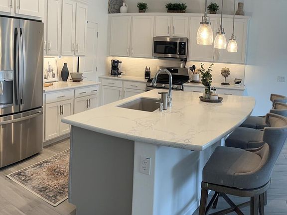 Gas stoveWhite marbled quartz countertopsDream cloud king-size mattressStainless steel appliances