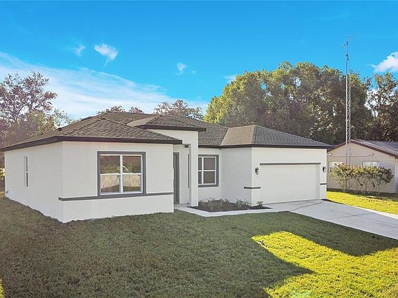 One or more photo(s) has been virtually staged. Welcome to this charming 3-bedroom, 2-bathroom home in the desirable Marion Oaks community. Featuring an open floor plan, modern kitchen with stone countertops, laminate flooring, and a 2-car garage, this home offers comfort and functionality. The covered patio and spacious lot with no HOA make it ideal for relaxing or entertaining. Located near Marion Oaks Elementary and Horizon Academy, with quick access to Hwy 484 and I-75. Enjoy nearby shopping, dining, and outdoor activities, including the Ocala National Forest, just a short drive away. This home is perfect for families or anyone seeking a modern, move-in ready property in a prime location. High Celling: 12 feets.