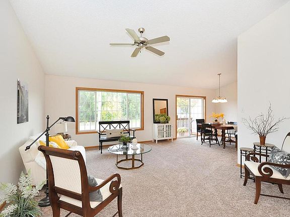 Open and spacious end unit townhome that shows like new again! Just installed by owner: new carpet, new stainless steel kitchen appliances, new interior paint walls and ceilings. Featuring soaring vaulted ceilings, main floor laundry, private full master bath & walk-in closet 10x7. Walkout lower level family room with wet bar (could be a 3rd BR also). Lots of storage areas for your belongings. Townhome has large room sizes. Exceptional floor plan and unit. You will not be disappointed!