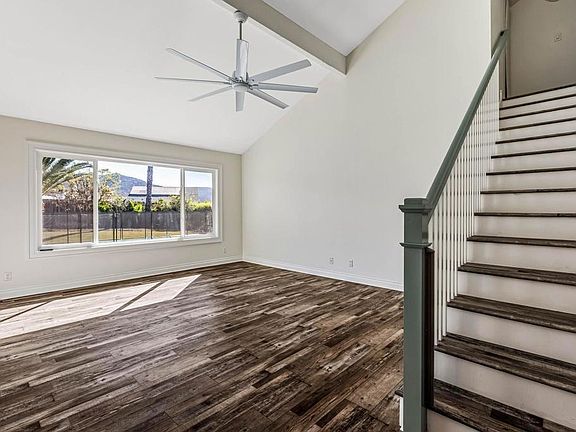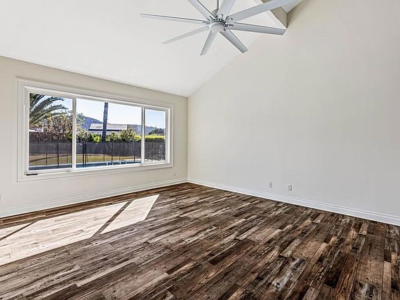 This impressive two-story home offers 4 spacious bedrooms, 3 beautifully updated bathrooms, and 1,891 sq. ft. of living space in the sought-after Viewpoint subdivision in Poway. Step into the expansive family room, featuring soaring ceilings, gorgeous luxury vinyl plank flooring, and abundant natural light that flows throughout the home. Enjoy direct views of the sparkling backyard pool, creating a perfect indoor-outdoor living experience. The kitchen and dining room combination is perfect for family meals or entertaining, offering both functionality and charm. The home features OWNED SOLAR, providing significant energy savings! Unique to this home are the dual master bedrooms—one upstairs and one downstairs—both featuring newly renovated bathrooms. The upstairs master suite offers a spacious retreat with a modern 2-person shower and a walk-in closet. Outside, the backyard is designed for relaxation and entertaining, with a sparkling pool and ample space for gatherings. Located just steps away from Garden Road Elementary / 1.6 miles to Twin Peaks Middle / 2.8 miles to Poway High. Additionally, a neighborhood park (Garden Road) is just a short 5-minute walk away, making this home the perfect balance of convenience and lifestyle.