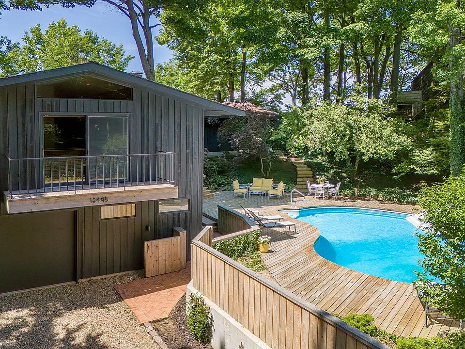 Stunning Harbert Lakefront - Malibu Style Mid Century Modern home offering stunning views of your expansive private beach. Enjoy a peaceful drive up the beautifully wooded private road to this secluded spot. The exterior features richly stained cedar siding, new roof, multiple decks, & a luxurious pool - perfect for cooling off on hot days. Inside, you'll find an upgraded kitchen, sleek cabinetry, & plenty of counter space. Three main level bedrooms with lakeside decks provide comfortable accommodations for you & your guests, while a fourth ensuite bedroom is truly a private oasis. The versatile lower level can be used as a gym with a full bathroom or transformed into a game room. The secluded location ensures peace and quiet, yet it's just a mile from the bustling town of Harbert with it's own bakery, full service dining spots, antique stores, and high end clothing boutiques.