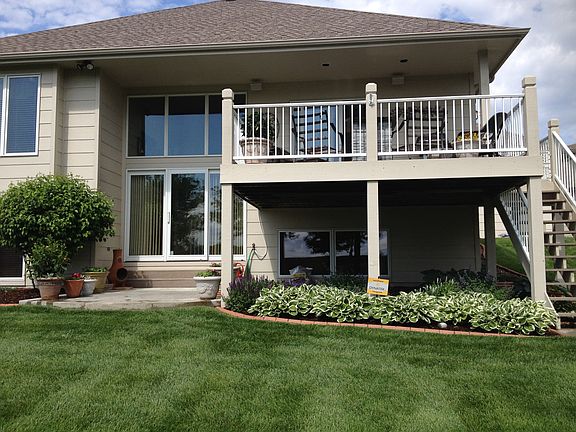 2 bedrooms on main level; large master; 2 bedrooms, family room, bath & game area in lower level; formal dining expandable up to 14 people; 5 ceiling fans; 3 walk-in closets; gas fireplace in hearth room; granite in kitchen, butler's pantry & master bath. New AC & Furnace in 2015; New carpet main level 2015; new dishwasher, new disposal, new water heater, new floor in utility room; HOA dues cover lawn mowing, lawn fertilizing, lawn watering, trash, snow removal, tree fertilizer and home exterior painting every 7 year - due in 2017. Panoramic view of #9 golf course from tee box to green - east side view great for evenings on the deck. Speakers in great room, hearth room and patio for music.