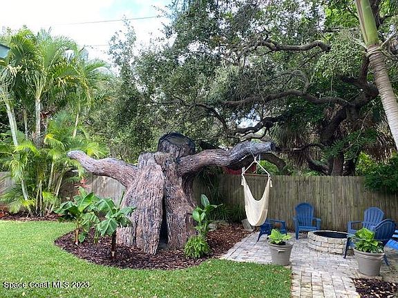 Beautiful beachside home just a short STROLL TO THE BEACH. Professionally designed & decorated this 3 Bedroom 3 Bath Dream Beach House with everything you need to live the beach life. The beautiful décor, art, & furnishings makes this beauty a true move in ready home, just bring your suitcase. Open plan with 2 living areas.. No HOA. Split floor plan with spa like master bedroom separated from the other bedrooms. Beautiful updated kitchen & baths. Stylish beam ceiling treatment. The décor & furniture convey. Shaded lawn with outdoor dining, fire pit, pavers, hammock, front/rear entertaining areas, & tree house! Front lounge area to watch the sunsets. Desirable South Cocoa Beach with easy access to the Beach, Downtown shops, festivals, & restaurants. Come live the beach island lifestyle!