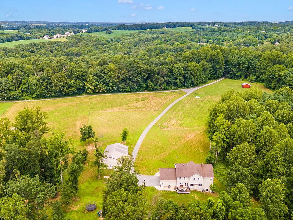 Bring your farming or retreat dreams to life! A hidden gem in Carroll County, MD, you'll find this custom-built colonial with expansive yard and 63+ acres an endless resource of possibilities! This one-of-a-kind home offers multiple and expansive opportunities with a separate lower level living area, 2 main level powder rooms, laundry on each floor, custom, gourmet kitchen with oversized island, luxury primary suite, multiple bedrooms, library, a 3 car garage, brand new 14x20' deck, and detached 40x60' pole barn with 3-bay doors, 16 ft. ceilings, separately metered for electric, and in-use water. The 50 acres of rolling woodland are perfect for privacy and hunting with an abundance of wildlife. Property has approximately 11 acres of cleared pasture, seeded for grass-fed cattle, which could be converted for equine. Woodland backs up to a private stream with a clearing and a campsite. Established trails for horseback riding, walking, hunting & recreational vehicles make stream and river access easy. Located on the west side of the property is the North Patapsco River. The fenced pasture has 16 ft on-center fence posts. 2 Run-in shelters, 3 water troughs, each with their own heater, separate shut off valves, and breaker, fed by a 20+ gal per minute well. Protected in the Legacy, Forest Conservation, and FIDS programs, Ask for more information. Recent updates include: Upper level HVAC: July 2019 Composite deck off the kitchen: March 2025 Lower Level finished basement with kitchenette and full bath: March 2025 9'x5' kitchen island w/ quartz countertop: March 2022 16' x 36' Barn Mezzanine: April 2024 16'x 22' Run-in Shed: July 202 20' x 22' Run-in Shed: March 2023 Barn Concrete & Electric Service: March 2021 Water Trough water piping and electric: November 2020 Other info: House is on 400 amp service Pole Barn is on 200 amp service metered separately: March 2021 Extreme privacy yet still within close proximity to Westminster shopping and commuter routes MD-140 (6.4 mi), MD-97 (6.4 mi), MD-30 (7 mi.) and I-795 (17.3 mi.) Reach out to schedule your private showing of this extremely rare opportunity now!