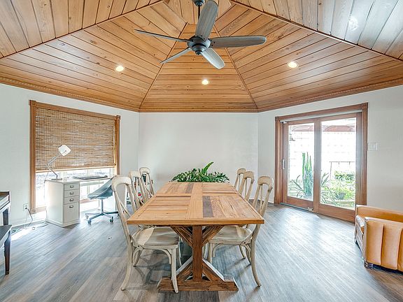 The home was built in the era when contemporary modern design with vaulted ceilings and open layouts was gaining popularity in Texas residential architecture. The first room that you see when you enter this home can be used as a formal room, game room or a game room. It features a luxury master suite with an additional entrance to the side yard, floor to ceiling windows a design choice that was uncommon in suburban homes of that period, making it stand out historically. You will be surprised of the bathroom and the jetted hot tub. The detached guest house 1,100 sq ft is larger than many starter apartments, offering full kitchen, laundry, and bath facilities quite rare PLUS 2 large storage units.. Bring your creativity! Two large patios in the back yard makes a special area for family gatherings or just relax. You will enter the home from the back and will walk through the to enclosed sun room making it a great room for yourself, plants, children or pets.