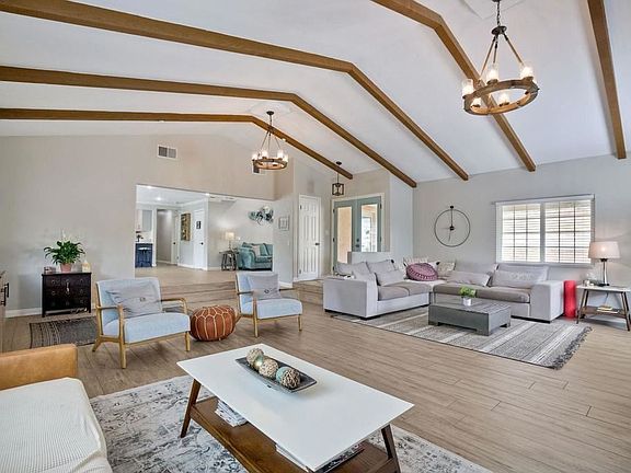 Welcome to your dream oasis nestled in the heart of Fallbrook, where luxury living meets comfort and serenity. This stunning 4-bedroom, 4-bathroom estate is situated on a sprawling, lush lot, offering ample space for relaxation, recreation, and entertainment. With a thoughtfully designed layout, modern updates (including SOLAR), this property is the epitome of Southern California living. Step inside the elegant main residence and be greeted by the spacious, light-filled living areas adorned with exquisite wood beamed ceilings, a stack stone fireplace, and modern wood-like tile flooring. Continue into the beautifully updated kitchen, featuring top-of-the-line appliances and ample cabinetry. The flexible space adjacent to the kitchen serves as a versatile office or playroom, adapting to your family's unique needs. The primary bedroom is complete with a walk-in closet and a luxurious master bath, boasting a spa tub, double vanity, and modern fixtures. Three additional well-appointed bedrooms in the main house provide plenty of room for family, guests, or creative uses like a home gym or office. Relax and unwind in your private outdoor haven, where a sparkling salt water pool and invigorating spa await your enjoyment. Host unforgettable gatherings on the expansive patio perfectly designed for al fresco dining and lounging - large swing seating and fire pit. The large lot provides ample space for gardening, outdoor activities, and your imagination to run free! A detached stucco ‘she-shed’ is the ideal space for a quiet reading room, tranquil yoga den, or kids playroom. The charming 2-bedroom, 1-bath detached manufactured home exudes coziness and privacy. The list truly goes on and on!!! Don't miss your chance to call this magnificent estate home.