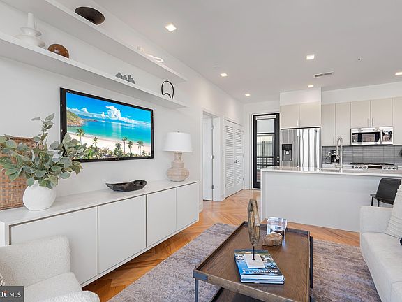 Welcome to this gorgeous condo on Capitol Hill! This outstanding unit is walking distance to world class restaurants and shops at Eastern Market, Barracks Row and Penn Ave. It is very near the Potomac Avenue Metro and a Hill favorite, The Roost. Built in 2017, Stone Hill is a boutique condo building featuring luxurious contemporary finishes and designer touches. It sports a fabulous roof deck with Capitol and Monument views! Offering great livability and sophisticated style, the two bedroom, two full bath unit’s position in the building makes it feel as if it is a penthouse unit. There are no neighbors above the condo and it has only one shared wall with next door. The unit has its own dedicated parking space, additional storage, and washer and dryer. Catch the breeze with the wonderful bonus of a private balcony. There is a secure bike room in the building and it is pet friendly. The contemporary layout flows seamlessly, allowing for lovely entertaining space. The living room sparkles with a beautiful wall of windows. Fine herringbone wood floors are found throughout. The bedrooms are on opposite sides of the unit, allowing for increased privacy. In addition, the high ceilings make it seem even more spacious. The gourmet kitchen is a showstopper! It features 42-inch upscale cabinetry and a large island. There are stainless steel Samsung appliances, with the stove using gas heat. A chef will delight in creating culinary masterpieces with the copious countertops and prep space! Among many seller improvements are the beautiful floating console, customed designed and installed in the living room. Also bespoke are the open shelves in the living room and second bedroom. The seller installed closet built-ins in both bedroom closets as well as a contemporary new backsplash that adds pizzazz to the kitchen. With its unique location, this stunning condo has it all: a premier address, easy commuting routes, convenient access to the metro and walking to some of the finest restaurants and boutique stores in Washington. This prestigious condo offers the perfect ingredients for the fortunate buyer to be able to call it “Home!”