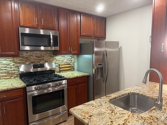 Ample storage space: Mahogany armoire, 4 drawer mahogany nightstand, and 4 drawers in the TV dresser in living room. Desk and chair provided for room. Pottery Barn down duvet and duvet cover over Stearns and Foster medium firm mattress.