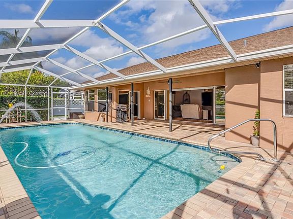 WELCOME to this ABSOLUTELY BEAUTIFUL 3 BEDROOM 2 BATH, SPLIT FLOOR PLAN, POOL HOME...OVERLOOKING A POND giving you the opportunity TO TAKE IN ALL THAT NATURE HAS TO OFFER...IN THE DESIRABLE COMMUNITY OF TRINITY OAKS! As you enter you will immediately notice the DESIGNER TRAVITINE FLOORING, HIGH CEILINGS and OPEN FLOOR PLAN. The GREAT ROOM has pocket sliding doors that completely open up to the OVERSIZED COVERED LANAI, which doubles your living space, PERFECT FOR ENTERTAINING! KITCHEN was recently done with CUSTOM HIGH END CABINETS, EXOTIC STONE COUNTER TOPS with NATURAL STONE HERRINGBONE BACKSPLASH...you will love all the cabinet and counter space with STAINLESS APPLIANCES. Enjoy your morning coffee from your eat in kitchen sliding glass doors leading out to the pool, surrounding bay windows which over looks the pool. Master Bedroom is generous in size with two walk in closets AND a BONUS ROOM which can be used as an office or exercise room. Master Bath has access to the pool area, STEP IN SHOWER with a separate SOAKING TUB. SECOND BATH RECENTLY UPDATED. WALK IN...INSIDE UTILITY ROOM with utility sink, WASHER AND DRYER INCLUDED. This home has been IMPECCABLY maintained... POOL FILTER NEW 2021, ALL WINDOWS TINTED 2024, BOTH TOILETS REPLACED 2024, NEW AC 2024, POOL CAGE RESCREENED 2023, NEW WATER HEATER 2023. LOW HOA FEES, NO CDD, NO FLOOD ZONE. TOP RATED SCHOOLS. GREAT SHOPPING AND RESTAURANTS just minutes away. This beautiful home will check all the boxes...OPEN FLOOR PLAN, AWESOME BACK YARD, EXCELLENT LOCATION! Make your private appointment today!