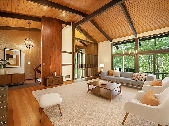 This extraordinary home has some of the finest timeless architectural details. Stunning views of the 1.96 acre wooded lot. From the beautiful stone wrapping the exterior of the home into the Great Room to the multiple decks and patios, this home is spectacular! Enjoy the change of seasons surrounded by trees and lush landscapes. Inside the home features 5 bedrooms, sliding doors in each of the bedrooms leading to the decks, and incredible wood ceilings and feature walls. This gracious home is ready for new ownership. A true opportunity to make this home your own. Come fall in love with 1345 Ledgewood Drive in Bath!