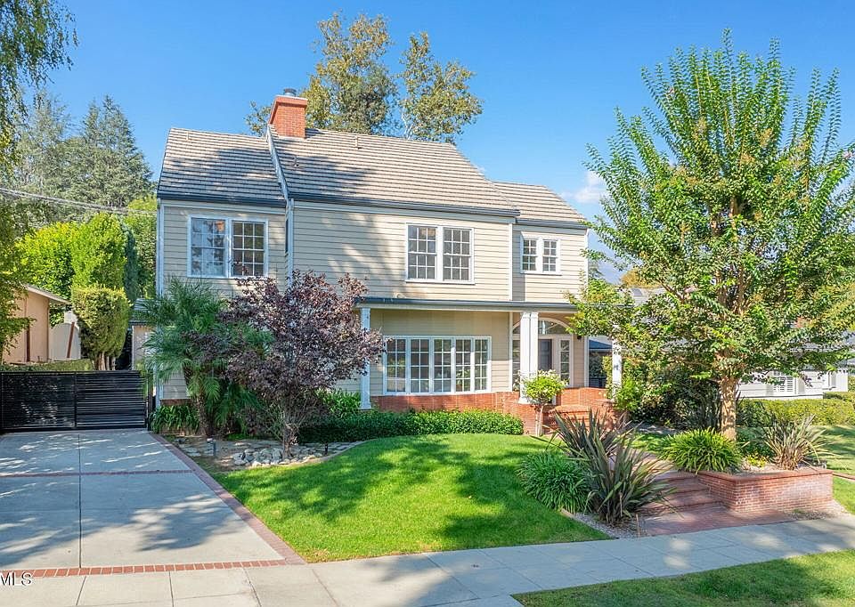 Classically beautiful, extensively updated, and set on the end of a peaceful cul-de-sac, 1345 Lomay Place is easy to fall in love with. This picture-perfect Colonial Revival rests in Pasadena's prestigious Linda Vista neighborhood where lush natural beauty and iconic character homes abound. Exceptional curb appeal leads to elegant interiors showcasing white oak hardwood floors, spacious entertaining rooms, and a graceful layout that connects the main living areas, bringing everyone closer together. As you enter, the formal living room flows into the cheerful family room, with a dual-sided fireplace set between. Radiant picture windows fill the entire area with warm, natural light. The nearby dining room, with French doors to the backyard, welcomes traditional Sunday evening dinners and ambitious holiday feasts alike. Generously sized and well-appointed, the kitchen offers plenty of room for multiple sets of hands to help bring secret recipes to life. A first floor bedroom is easily used as an office while 3 additional bedrooms are found upstairs, including the luxurious primary suite with its soaring cathedral ceiling, gleaming marble fireplace, and dual walk-in closets. A decadent ensuite and a massive private balcony with mountain views enhance this treasured sanctuary. Two additional bright and cheerful bedrooms share a convenient Jack-and-Jill bathroom. Summer bliss awaits out back where you'll enjoy ice-cold drinks on the shaded patio while flipping patties on the built-in-grill, gleeful shouts of 'Marco' and 'Polo' ringing out from the baja pool all the while. Finally, the gated driveway includes a Tesla charger while offering plenty of space for parked cars or training-wheel bike rides. In a treasured neighborhood known for its natural beauty, architectural charm, and strong sense of community, 1345 Lomay Place is a home where life feels both peaceful and complete.