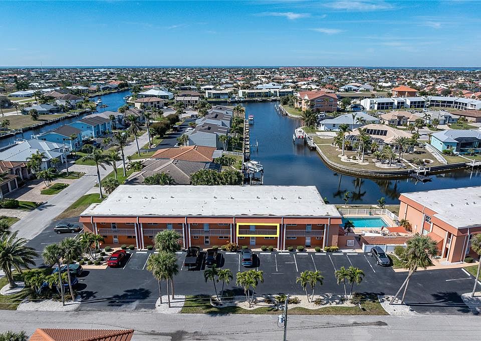 RENOVATED WATERFRONT CONDO IN PGI W/SUNSET VIEWS & QUICK BOATING ACCESS - Discover this completely rebuilt and move-in ready 2 bed/2 bath condo in Punta Gorda Isles, offering spectacular canal views, western exposure for nightly sunsets, and first-come, first-serve dockage. With most furnishings included, this residence is ideal for seasonal living, downsizing, or as an investment. Inside, the open-concept floor plan showcases a beautifully updated kitchen with stainless steel appliances, stone countertops, turquoise glass tile backsplash, and stacked washer/dryer tucked conveniently nearby. The spacious living area opens seamlessly to the screened lanai, creating an effortless indoor-outdoor flow. A wall of closets in the main living area provides ample storage, while a large lanai storage closet adds practicality. Both bedrooms feature en-suite baths. The primary suite offers three closets — including a walk-in — plus direct lanai access to enjoy the view. The screened lanai boasts a stunning down-the-canal view combined with a coveted western rear exposure for breathtaking sunsets. Driftwood Condominiums offers a heated pool with shaded seating, expansive sun deck, BBQ area, and outdoor dining space—perfect for entertaining. Docks are available on a first-come basis, with openings currently available, allowing you to keep your boat right behind your unit. Reach Charlotte Harbor in minutes. Assigned parking and ample guest parking add convenience. Living in Punta Gorda Isles means enjoying quick access to waterfront dining, boutique shopping, and year-round events at Fishermen’s Village, waterfront parks or in the historic downtown area. Miles of sidewalks throughout PGI connect you to nearby parks, nature trails and the harbor walk. New to the area? Consider joining the Isles Yacht Club or the PGI Civic Association (PGICA) - they offer a variety of social clubs and activities. Move-in ready and low-maintenance, this condo is perfectly positioned to enjoy the best of Florida’s active, waterfront lifestyle. Make an appointment today.