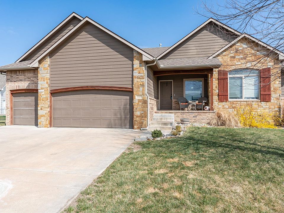Absolutely beautiful neighborhood with community pool and within the Maize School District! Cul de sac living with NO Specials! Home has over 1600 square feet on the main floor, with the desirable open floor plan concept, beautiful kitchen island with granite countertop, walk in kitchen pantry, 10 foot ceilings, main floor laundry and the perfect drop zone right off the three car garage! Main floor features hardwood laminate flooring, gas fireplace, U-shaped staircase, staggered kitchen cabinets, upgraded interior paint, rich expresso stained trim and white doors carried throughout! Basement is finished for you with the living room featuring custom finished wet bar with designer wood look luxury vinyl planks and room for a full-size refrigerator. Home has two finished bedrooms in the basement and a full bathroom. Exterior lawn is complete with irrigation well, sprinkler system, wrought iron fence and is located on a cul de sac! Liberty Park is located in West Wichita (13th & 135th) and offers community pool, greenbelt and fishing ponds. Don't miss out on this gem!