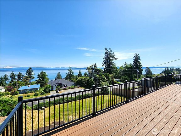 Camano Country Club gem delivers sweeping Port Susan & Cascade views from both floors. Access to 3 private beaches, clubhouse, and ferry-free island living just 15 min to Stanwood. Nearly new from the studs out remodel in 2023: New septic, roof, drywall, paint, wide-plank LVP, carpet, lighting, doors, quartz counters, stainless appliances, windows and more. Light-filled great room with navy brick gas fireplace opens to an expansive view deck. Flexible layout offers 3 bedrooms, 1 3/4 baths, & a daylight level with large family room, fireplace, den/office & 2nd bedroom plus laundry. Two large bedrooms on main floor plus main bath. Garage with 2nd laundry room. large yard with recent updates. Virtually staged.