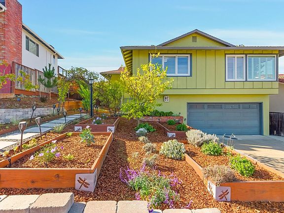 Perched above the Bay with sweeping views of shimmering water and Mount Diablo, this elegant home blends classic comfort with modern design. Built in 1961, the 1,750 square foot main level features an open floor plan, a remodeled chef's kitchen with professional appliances and pantry, and spacious living and dining areas ideal for entertaining. Three bedrooms and two baths complete this level. Downstairs there are 770 sq ft of unpermitted flexible living space. An ideal in-law unit includes 1 bed, full bath, living area, kitchenette with refrigerator and a second washer/drier with direct access to the outdoors. Additional bonus room for office or hobbies.The spacious 9,414 square foot lot includes private terraced gardens lined with a multitude of fruit trees, tranquil seating areas, a sparkling pool, and a charming cabana.