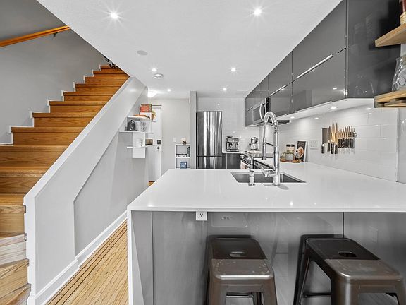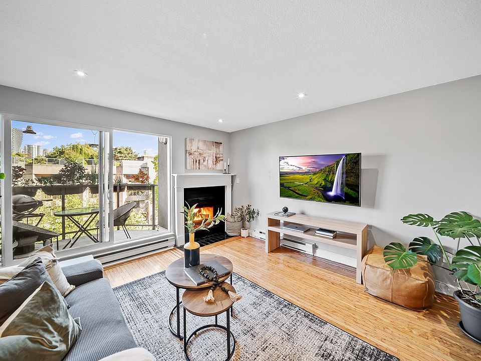 A rare freehold concrete townhouse just four minutes from Granville Island—a location where nearly every neighbouring property is leasehold. This 829 sq ft one-bedroom at Granville Island Village fuses modern design, character, and enduring value. A 2016 renovation introduced a sleek kitchen, pot lighting, smooth ceilings, and hardwood inlays, while a grandfathered wood-burning fireplace adds warmth and authenticity. Two tranquil north-facing patios frame city and mountain views from the quiet greenbelt side, creating a calm urban retreat. With two private entrances, parking, and in-suite storage, this home lives like a private residence. Recent roof and rainscreen renewals are fully paid, offering decades of cost certainty.