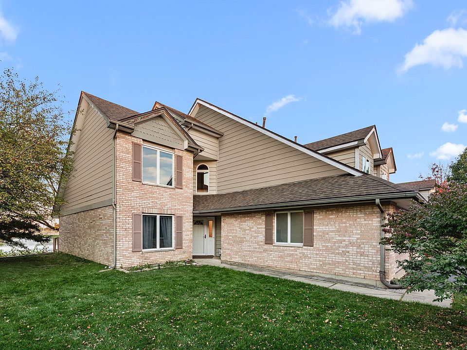 Luxury story 1/2 (2 bedroom- 2 bathroom-Huge Loft!) Brick and Cedar townhome on the POND! 2 private bedroom suites! Both bedrooms have private bathrooms! Large great room will impress with soaring high ceilings and fireplace. End unit offers more yard area and large deck overlooking pond, fountain, wildlife and woods. Deck has access with french doors from 2 areas of main level. Convenient main level bedroom suite features vanity area, an oval soaking tub and step in shower. Finished main level laundry room. Step upstairs to the oversized loft area overlooking downstairs. This loft is perfect for another living area, home office or guest bedroom. Outside has been professionally painted October 2025. Quiet cul de sac location and close to downtown historic area of Crown Point. Minutes away from mall and shopping areas. Walking trail around pond.
