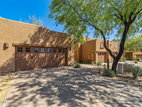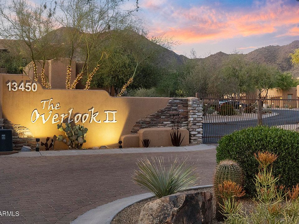 Meticulously cared for and beautifully remodeled in 2024 with fresh paint and updated flooring, this 3-bedroom luxury townhome offers ideal full-time living or a perfect lock & leave. Located in one of the best spots within a pristine, gated community, it boasts privacy, no upstairs neighbors, and direct access to open desert. Enjoy breathtaking 180° mountain views from the oversized balcony and explore 40+ miles of hiking trails just minutes away. The den with French doors and closet easily functions as a 3rd bedroom or office. Across from the unit: guest parking, heated pool, spa, gym, clubhouse, and BBQ area. Extended 2+ car garage provides excellent storage. Prime location near shopping, dining, golf, and Mayo Clinic. Come check it out today and experience the lifestyle!