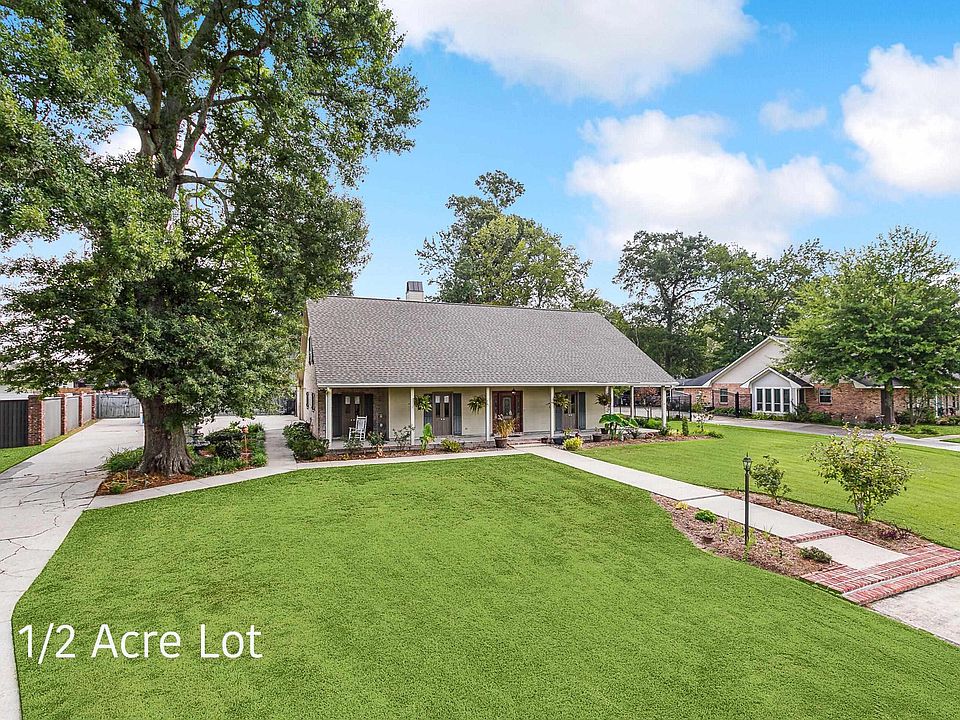 Looking for the privacy of a large lot and gorgeous afternoon sunset view? You'll love this updated home in a GREAT location just down the street from Woman's Hospital and sits on a 1/2 ACRE LOT with a fully fenced yard....AND acres of common area for the neighborhood just across the street! (see Virtual Tour). So many places to relax in this Acadian Style home including the newly installed fire pit area. Don't forget to check out the exterior Gym that could easily be transitioned into a workshop. Interior amenities include: Updated kitchen with granite slab counters and center island; gas stove, oversized sink; updated recessed lighting, an oversized counter for barstools and walk-in pantry. The walk-in utility room has a folding counter, room for TWO freezers and a separate broom closet. The living room has a soaring cathedral ceiling up to the second story; real wood floors; brick fireplace that extends to the ceiling; a coffee/beverage bar (with plumbing in place for wet bar); and a wall lined with windows overlooking backyard. The Downstairs Master Bedroom has an attached Office/Sitting/Nursery Area; new carpet; and two walk-in closets. Master Bath has: large, oversized tub; separate sink areas; vanity area; and large walk-in shower. There is an additional, full, guest bath downstairs with a new shower. ALL bedrooms have large walk-in closets. Upstairs there are four bedrooms, walk-in closets in each bedroom, an EXTRA walk-in closet and two walk-in attic areas. Other Amenities: Architectural Shingle Roof only 4 years old; New HVAC (2022) downstairs; Upstairs HVAC 2011; New HVAC Compressor Aug. 2023. Units serviced yearly (last service spring 2023); New paint in living room, dining, foyer, kitchen, coffee bar and hall in August 2023. There is also a large storage area behind the boat port/gym with shelves and counters. The two car garage doubles as an entertainment area. Also, there is so much room for parking!!!