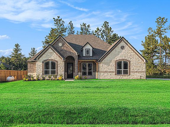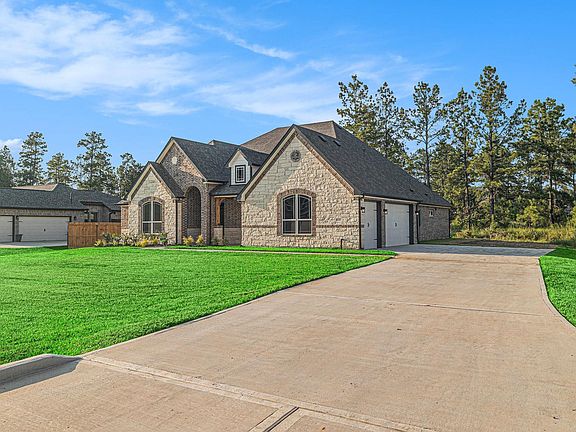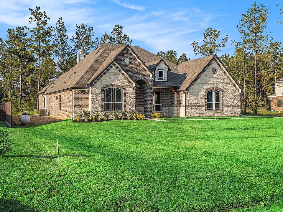 Beautiful one-story on nearly an acre with 2,852 sq ft, 4 bedrooms + study, dining & media room (prewired surround), 3 baths, and 3-car sideload garage w/ 8’ door. Features include high ceilings, 8’ interior doors, 5¼” baseboards, crown molding, and laminate wood floors (carpet in bedrooms). Gourmet kitchen offers double-stacked cabinets, Quartz counters, SS built-ins, black farmhouse fixtures, designer backsplash & double trash pullout, opening to family room w/ shiplap fireplace. Private primary suite with spa bath. Guest suite w/ full bath. Covered patio, oversized utility, sprinkler, propane, Full Gutters & much more!. Conroe ISD, near I-45 & The Woodlands.