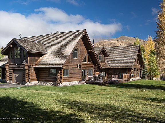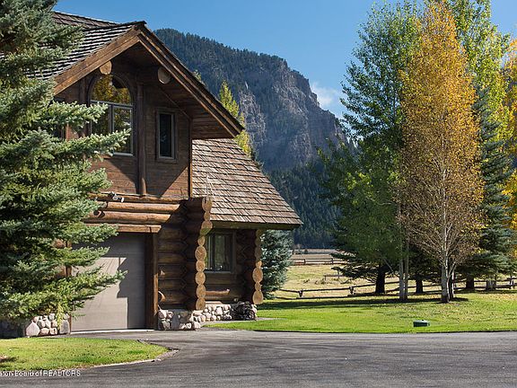 Bourbon Whiskey Ranch, Rare Opportunity to Own a 34-acre Jackson Hole Ranch: This Jackson Hole Ranch has it all. It's location in exclusive Bryan Flats is an easy 20 minute drive from the town square. The Hoback River is steps away and the ranch is adjacent to incredible and easily accessible back county in Willow Creek for fishing, riding and hiking. The main home has a large ground floor master and open floor plan with two additional bedrooms, office and 2nd large living area. The two charming log guest cabins provide 4 individual suites with private entrances, baths and small kitchens. Additional bunk houses and ranch buildings provide the space you need for horses, toys or recreational vehicles. The 34 acres has ample water to keep grounds lush.