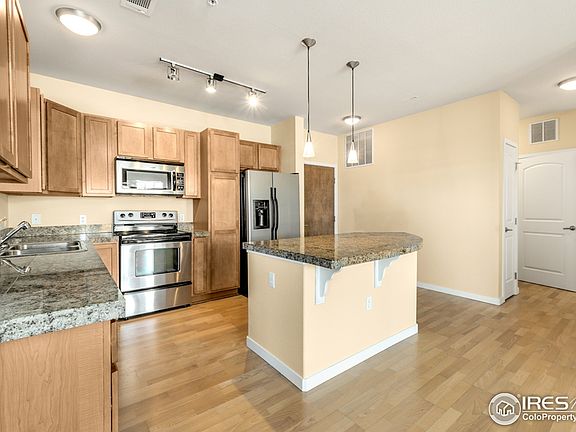 Fantastic condo in the beautiful Vantage Pointe Loft complex. This 2 bedroom 2 bathroom corner unit, is move-in ready. Featuring Hardwood floors, Granite Tile Counters, included S/S appliances and washer/dryer! Enjoy mountain views from the balcony and bedrooms! Covered parking garage, park in your privately owned spot with storage locker. Ride the elevator, no stairs needed! Community Pool, Clubhouse, and Gym. Commuters will love the location whether going to Airport, Denver, or Boulder! Shopping mall and restaurants just down the road.