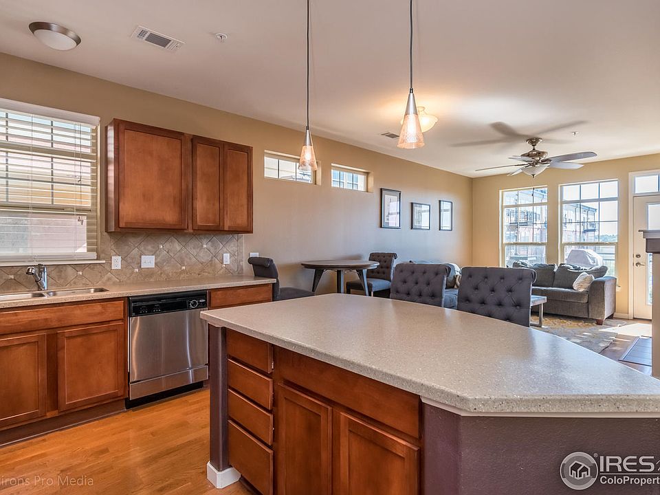 No need to decide btw Den and Boulder w/ this quiet, sun-drenched condo - located 20 min from Union Station, 20 min to Boulder, mins to the 36 Bikeway & the last stop to, 1st stop from DIA on the bus. This model unit has only been lived in since 2012 & has many upgrades - stainless appliances, Corian counters, a gas fireplace & wood floors in the open kitchen & living area that opens to an E. facing balcony. An outdoor pool, fireplace & a newly upgraded fitness room add to this condo's appeal.