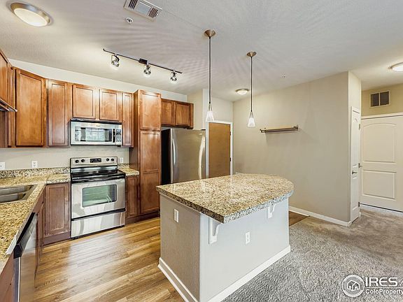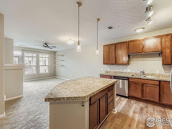 This first floor Via Varra unit is the BEST VALUE in the complex and features two bedrooms and two full bathrooms, and a bright, open living, dining and kitchen space. Enjoy being conveniently located between Denver and Boulder, and close to all the amenities of downtown Louisville as well as Flatirons Shopping Mall. Relax at the complex's recreation center/workout facility or lounge by the pool. Your dog will love the acres are grass out front, and you and you cat will enjoy sitting on the balcony watching the world go by.