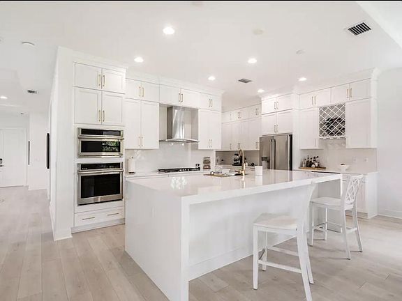 The chef's kitchen is a showpiece with high-end appliances, quartz countertops, a gas range, and a massive island, complemented by an oversized walk-in pantry. Step outside to a private backyard oasis, ideal for morning coffee, playtime, or hosting friends under the Florida sun.