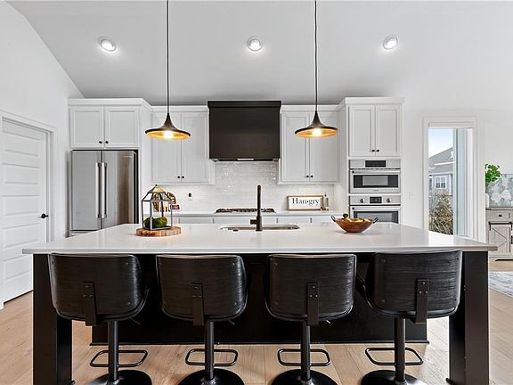 You will not be disappointed in this reverse by Covenant Homes! It is less than 2 years old, move-in ready, maintenance provided community with a zero-entry pool, cabana and playground, located on a cul-de-sac & in Blue Valley Schools! This open concept floorplan offers over 3,200 sqft of living space with large, vaulted kitchen and dining room, walk-in pantry, & oversized rooms throughout! Loaded with upgrades and high-end finishes, including enameled cabinets with soft close drawers, under cabinet lighting, wide plank hardwoods throughout the main level, tons of windows for natural lighting, covered deck on main level with composite decking and the walkout lower level gives you plenty of room for entertaining or hanging out with the family and friends in the large recreational area with wet bar! The fenced in backyard offers plenty of space for kids and pets to play! Come make it your home today!!