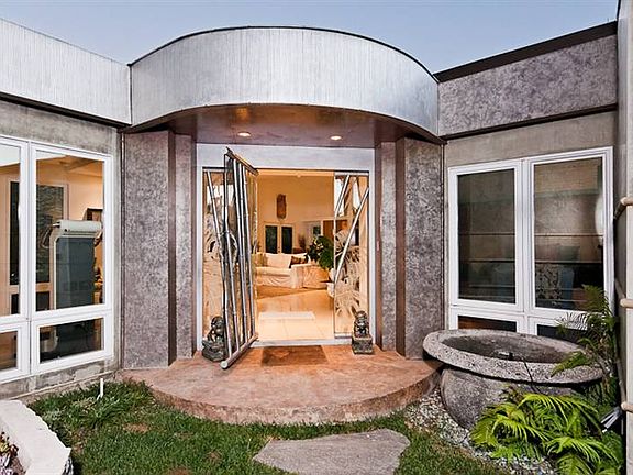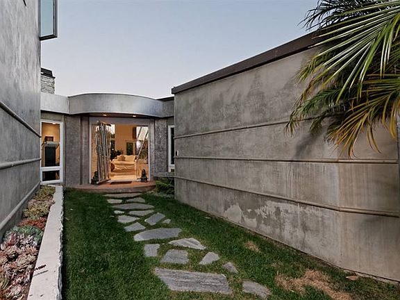 1346 Charmel Place Here is your opportunity to own a rare Pacific Palisades address that has the perfect combination of location, view, architecture and interior finishes. 1346 Charmel Place sits at the end of a Cul de Sac high in Marquez Knolls. The breathtaking panoramic views look out over Santa Monica Bay with ocean, beach, and whitewater views. At night the lights of the Queen’s Necklace and city beyond sparkle in the distance. Sophisticated contemporary architecture is evident with the smooth natural concrete walls, brushed metal garage door, etched glass front door and angular lines of the building. Upon entry the living spaces offer dramatic volume and large windows seamlessly blending interior and exterior space. The repeated use of finish materials both inside and out reinforces the relationship of natural and built environment. This can be witnessed through the use of concrete showers and bathroom counters (mirroring that of the exterior walls), glass tile bathroo