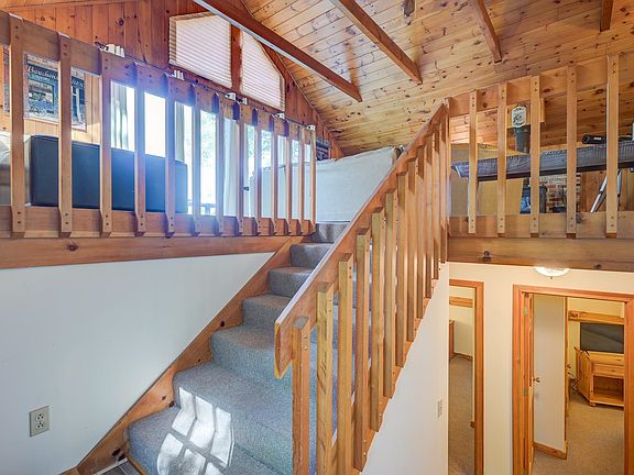 Convenient half bathComfortable bedroomsCozy wood-burning stove