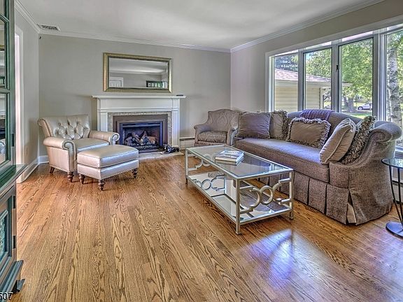 Fresh New Updates Distinguish a Bridgewater Township Ranch With an emphasis on clean lines and modern updates, this stylish three bedroom, two bath ranch is sited in sought-after Bridgewater Township. Set on 2.09 acres of privacy, the open, wooded and partially fenced property is located in a great neighborhood close to numerous amenities and transportation options. Highlights of the sun-splashed eight-room layout include recently refinished hardwood flooring, freshly-painted rooms, two upgraded gas fireplaces, recessed lights, and oversized windows for an abundance of natural light. The picturesque setting provides an expansive rear deck and patio, roomy shed, newly planted garden area and an attached two-car garage enclosed by recent cottage-style doors featuring automatic openers. A landscaped front walkway leads to the main entrance of this beautifully maintained home, where the inviting floor plan offers effortless single-level living. Introducing the home is a bright, airy foyer flowing into the living room, a welcoming space designed with an elegantly mantled gas fireplace, crown moldings, hardwood floors, a picture window and recessed lights. In the upgraded gourmet kitchen, quartz countertops, 42-inch maple cabinets, stainless steel appliances and tile floors are notable details. The adjacent dining area features a three-part window, chandelier and French door to the bright, airy sun room. A full wall of sliding glass doors in this vaulted ceiling space reveals an entertainment-friendly rear deck and patio. Also connected to the kitchen is a freshly-painted, skylit family room, where a raised hearth brick gas fireplace flanked by built-in bookcases creates a memorable focal point. A newly-created laundry room with stackable washer and dryer is also located in this part of the home. Set apart from the public spaces are three spacious bedrooms, including an expansive primary bedroom designed with a sitting area, walk-in closet and newly updated full primary bath featuring a new, oversized shower. Two more bedrooms share another full bath. Completing this home is a full, unfinished basement with secondary laundry, storage area with new shelving, and utility space. New in 2021 are the roof, natural gas furnace and hot water heater, while a Generac stand-by generator provides peace of mind. Additional mechanical systems include central air conditioning, well water and public sewer. Originally built in 1957 and thoughtfully upgraded using a contemporary design aesthetic, pride of ownership is evident throughout this appealing home. Conveniently situated in Somerset County's Bridgewater Township, this impressive ranch is close to Blue Ribbon schools, extensive shopping at Bridgewater Commons Mall, recreation, parkland, NJ Transit trains and major highways.