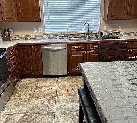 Backyard patioFully equipped kitchenDining nookStainless steel appliancesOpen concept family room