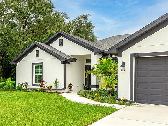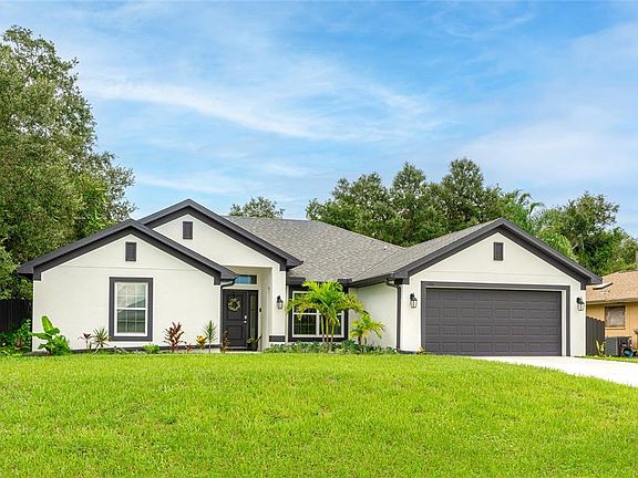 Discover a home that blends comfort, style, and the beauty of nature. With four bedrooms, three bathrooms, and over 2,100 square feet of living space, this residence is designed for both relaxation and entertaining. The open floor plan and vaulted ceilings create a bright, airy atmosphere, while the chef’s kitchen steals the show with blue cabinetry, granite countertops, and stainless steel appliances. Whether you’re hosting friends or enjoying a quiet evening in, this space makes every moment feel special. The spacious primary suite is a true retreat, featuring an en suite bath with a double vanity, large walk-in shower, and walk-in closet—perfect for comfort and convenience. A split-bedroom layout further enhances privacy, complemented by a Jack-and-Jill bathroom, interior laundry room, and ample closet space throughout. Elegant wood-look tile floors bring sophistication to the main living areas, while plush carpet in the bedrooms adds warmth. Step outside through French doors to your own slice of paradise. The 21' x 10' covered lanai overlooks a peaceful backyard framed by Florida’s natural beauty—a perfect setting for morning coffee, evening sunsets, or year-round outdoor living. Here, every day feels like a getaway. Experience the best of Port Charlotte living and schedule your private tour today.