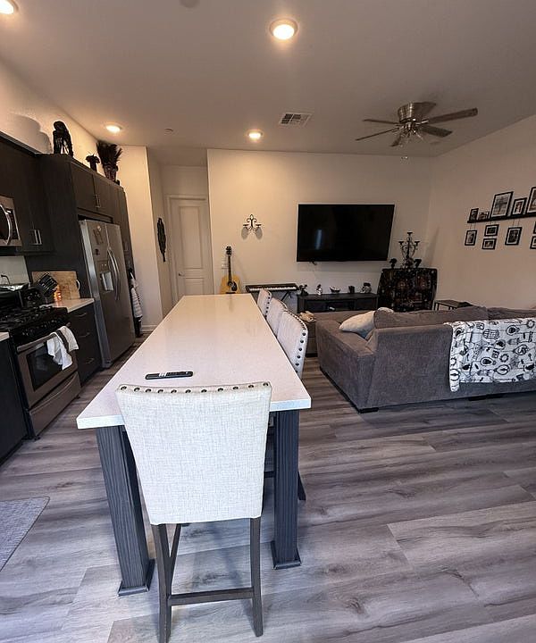 10.5' x 8.5' room available for rent in spacious San Marcos townhome. Central location right off the freeway close to colleges many restaurants in the surrounding area. The room available is on the same floor as the living room and kitchen and would have a mostly private bathroom. All utilities included with the exception of couples in which case an increase of $200 would be added. We do have a small dog, but no other pets will be allowed. If needed, we can make room for a small amount of storage in the garage. Parking is in the lot across the street. Closer assigned parking is available for a fee but it may not be immediate as we would have to get on the waiting list through the property management company Please contact if you have further questions regarding the space or the rest of the house happy to answer any questions you hav may have!