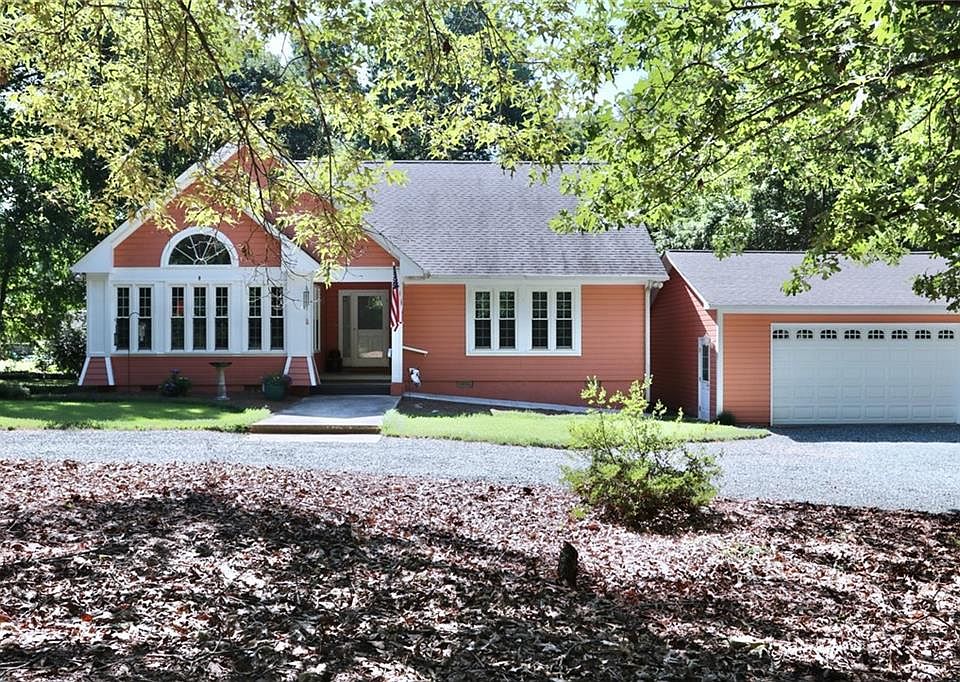 Beautiful and private home located just minutes from the interstate. Situated on 1.2 acres in established neighborhood with fenced in back yard & patio. Open & inviting floor plan includes breakfast room on front of the home, kitchen with Corian counters & freshly painted cabinets. Refrigerator remains. Charming built-ins include light up shelving in the kitchen. Dining room, Family room & MBR have vaulted ceiling. Family room has a wet bar & gas log fireplace. Sunroom is accessible from Fam Rm & Master BR (Sun Rm not included in sq ft). Large Master BR has double closets & bath with jetted tub & separate shower. Double over-sized wired detached garage with shelving. Wired storage building in rear & dog kennel attached remains. Fresh interior paint, new vinyl flooring in Kit, DR, Fam Rm, halls in 2020. Great closet space & pantry area. Generator & double garage added in 2018. Fencing in back yard & septic pumped in 2019. *Storage bldg to right of Garage does not remain.*