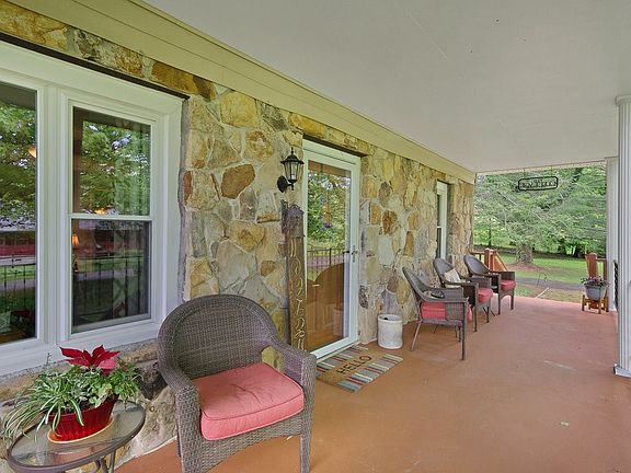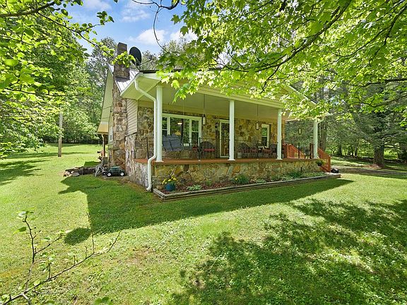 Nestled on a serene 2-acre lot, this adorable stone cottage offers the perfect blend of rustic charm and modern updates. Enjoy relaxing on the large covered front porch or unwind on the peaceful back deck overlooking a private backyard and small pond. Inside, you'll find hardwood floors, a cozy wood-burning stove in the living room, and a beautifully renovated kitchen featuring a farmhouse sink and quartz countertops with stainless appliances and new tile floors. With 3 bedrooms, 1 bath, this charming cottage is the perfect mountain getaway or permanent place to call home. This home is ideal for those seeking comfort, character, and country living. This home has been completely renovated down to the floor joist and supports in 2017, along with kitchen and bathroom completely remodeled, new wood stove, flooring refinished and tile installed, and roof, in 2019 the well was put in (needs pump) for back up water source, and a wood stove for secondary heating, and 2020 all new windows were installed. There are two storage buildings for outside storage and a cellar under the house. All appliances, washer and dryer, and 2 storage building convey,
