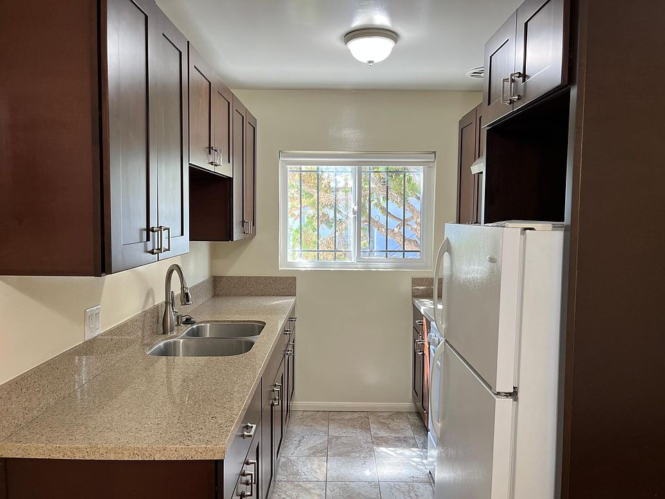 Spacious and newly renovated 1 Bedroom lower unit available now in Wilshire Vista Heights. 1-car Parking space and storage locker included. Completely updated with fresh paint, hardwood floors, new kitchen cabinets, tile floors, granite countertops, double glaze vinyl windows, new Sun Screen window coverings, and huge closets. This is a safe, quiet building with on-site laundry and common area lighting. Walk to great restaurants and shopping at Mid-Town crossing, Sprouts, Target and more. The owner of the building is responsive and respectful and has an attentive manager who across the street. Owner requests 12 month lease and security deposit equal to months rent due at signing.. Owner pays water, gas for hot water, and electric for common area lights. Tenant pays for electricity, gas for cooking/heating, cable, etc. The unit comes with 1 assigned parking space and a storage locker.