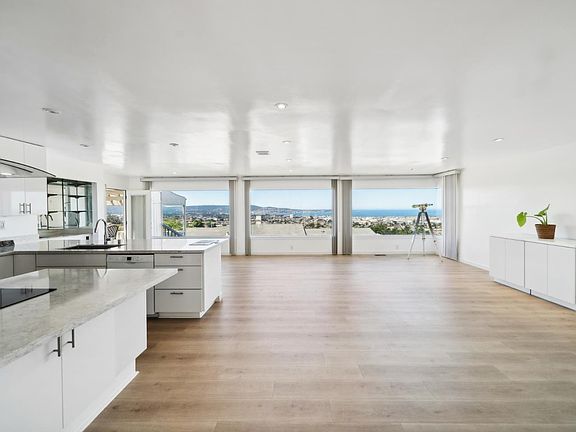 One of the most breathtaking ocean views of the entire Monterey Bay. Located on exclusive Skyview Drive, Newly remodeled home with a modern kitchen with additional cooking islands opens onto the spacious living and dining room areas. Also has a mini-bar counter and sink, and an open office/family area next to the kitchen, all new appliances less than 3 years old. Engineered floor throughout the kitchen and living areas, and with new carpet in all of the bedrooms.