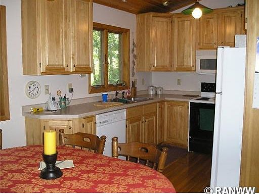 Smell the pines! Beautifully wooded 3.24 acre private setting with pines and trees on the lot and a clear view of Gilmore Lake. Immaculate inside and out, this cedar sided lake home is ready for a new owner. Painted walls, pretty pine ceiling and pine trim throughout. Unique corner river stone fireplae in the living room. T & G pine 4-season porch across the front lake facing. Finished lower level walk-out. Steps down to level grassy play area and 102 ft sandy swimming frontage.