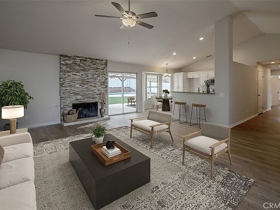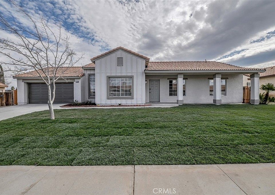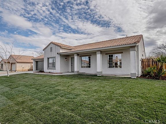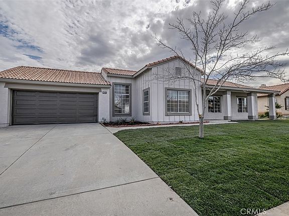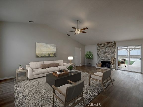 No need to look any further, this is the home you have been waiting for! Turn your vision of home ownership into reality with this picture-perfect 3 bedroom 2 bath single story home with sparkling swimming pool. Enviably set in a quite Victorville neighborhood, its beautiful curb appeal is enhanced by a towering shade, and freshly installed lush green lawn (front and back), new exterior lighting, and freshly painted exterior. Front door ushers you into the large, open-concept interior that displays a lively fusion of freshly painted neutral tones, vaulted ceilings, and on-trend, wide-plank flooring. A dramatic stone stacked fireplace spreads warmth across the living room and chandelier-lit dining area while expansive glass sliders allow you to easily take your meals alfresco. Reimagined with the avid cook in mind, the kitchen has recessed lighting, brand-new appliances, tons of white cabinetry, granite countertops. Upgraded baths with refreshed vanities, updated lighting, new mirrors, and reglazed shower surround accommodate the well-proportioned bedrooms. Your primary ensuite is also finished with new handles, closet doors, and plumbing fixtures. Weekends are a breeze out in the sun-kissed backyard that entices you with its pristine swimming pool with recently refurbished equipment as well as a covered patio, ideal for hosting BBQs or family fun in the water. Other notable features are the HVAC system, new exterior paint, outlets, door, vinyl fencing, new ceiling fans, plus an upgraded water heater. Don't wait, come take a look at this gem and grab it before someone else does!