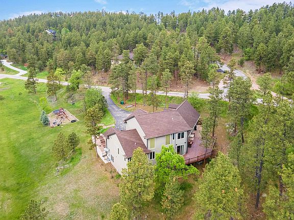 This property is available once again due to the buyer’s home sale contingency not being met, offering a renewed opportunity to make this exceptional residence yours. Ideally located in the hills but still conveniently close to town, this home is set amidst nearly three acres of beautiful pine trees. National Forest Service access short ride, walk or drive away. With this access you can enjoy miles of trails to explore the beautiful Black Hills. Sheridan Lake is ready for you to come fish, boat, or bath in the sun, and only a quick 15-minute drive from the house! Recent updates include a new roof, new gutters, freshly stained decks, new garage doors, updated siding paint, refinished hardwood floors, and new carpet in the lower level living room, providing a thoroughly refreshed interior and exterior. This luxury home offers five bedrooms, the primary on the main floor, 2 upstairs, 2 downstairs, three full baths, three half baths, and three gas fireplaces. The property also features an oversized four-car garage with ample space for vehicles and recreational equipment. The primary bedroom on the main floor provides hillside views, a walk-in closet, a soaking tub, and a spacious tiled walk-in shower. Above the garage, a fully finished 50x15 bonus room with west-facing windows overlooks the Black Hills—perfect for a playroom, additional bedroom, or another living space. Walk-in closets are available throughout the home for maximum convenience. The living room boasts vaulted ceilings, a striking stone chimney, and large windows that frame scenic views. The kitchen is equipped with granite countertops, a built-in oven, an eat-in area, and abundant storage, including a generous 12x14 pantry. The main floor highlights include large windows streaming in sunlight, hardwood flooring, a formal dining room, and a laundry/mud room with a 29x13 storage area adjacent to the garage. Call your favorite Realtor today!!